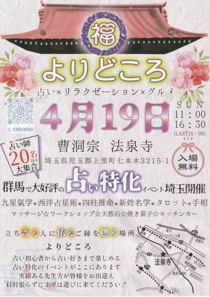 19日(日)よりどころ(占い×リラクゼーション×グルメ) 11:00~16:30